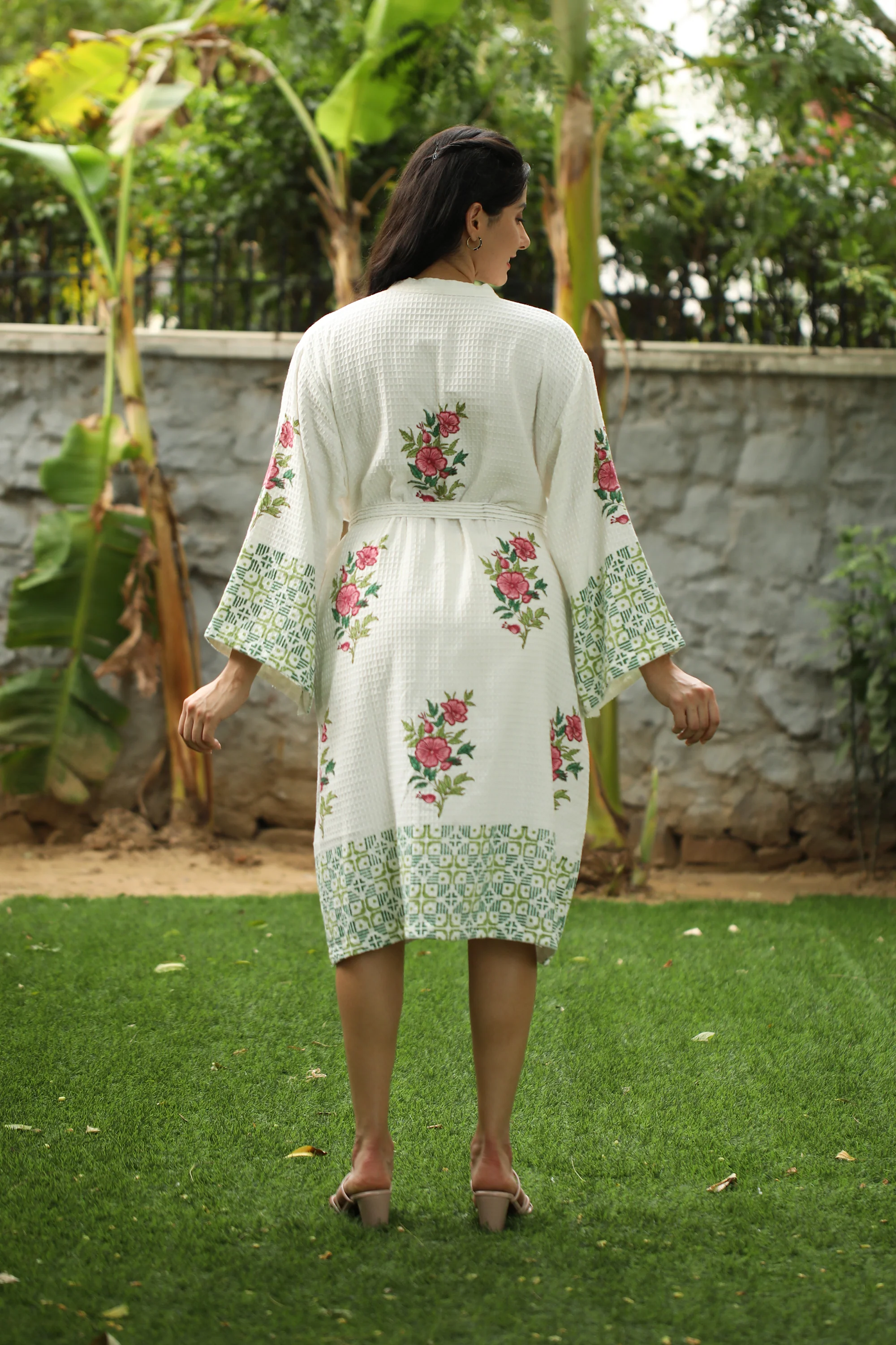 • 1 plush block printed waffle bathrobe — perfect for getting-ready photos and beyond