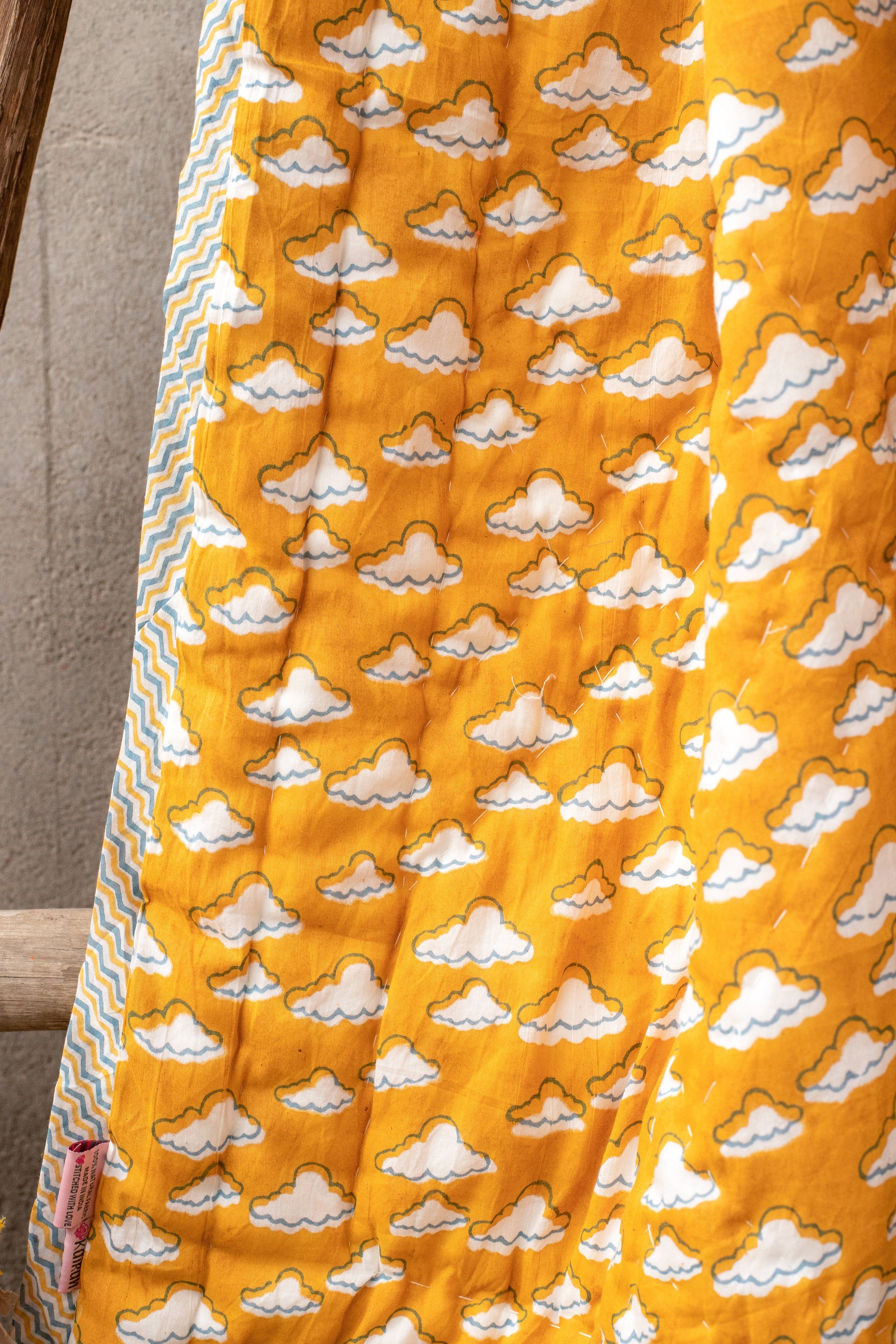 Some irregularities like missing print, light and dark areas, fabric joint, little smudges are all a part of the block print process. The quilt may have a concealed fabric joint.