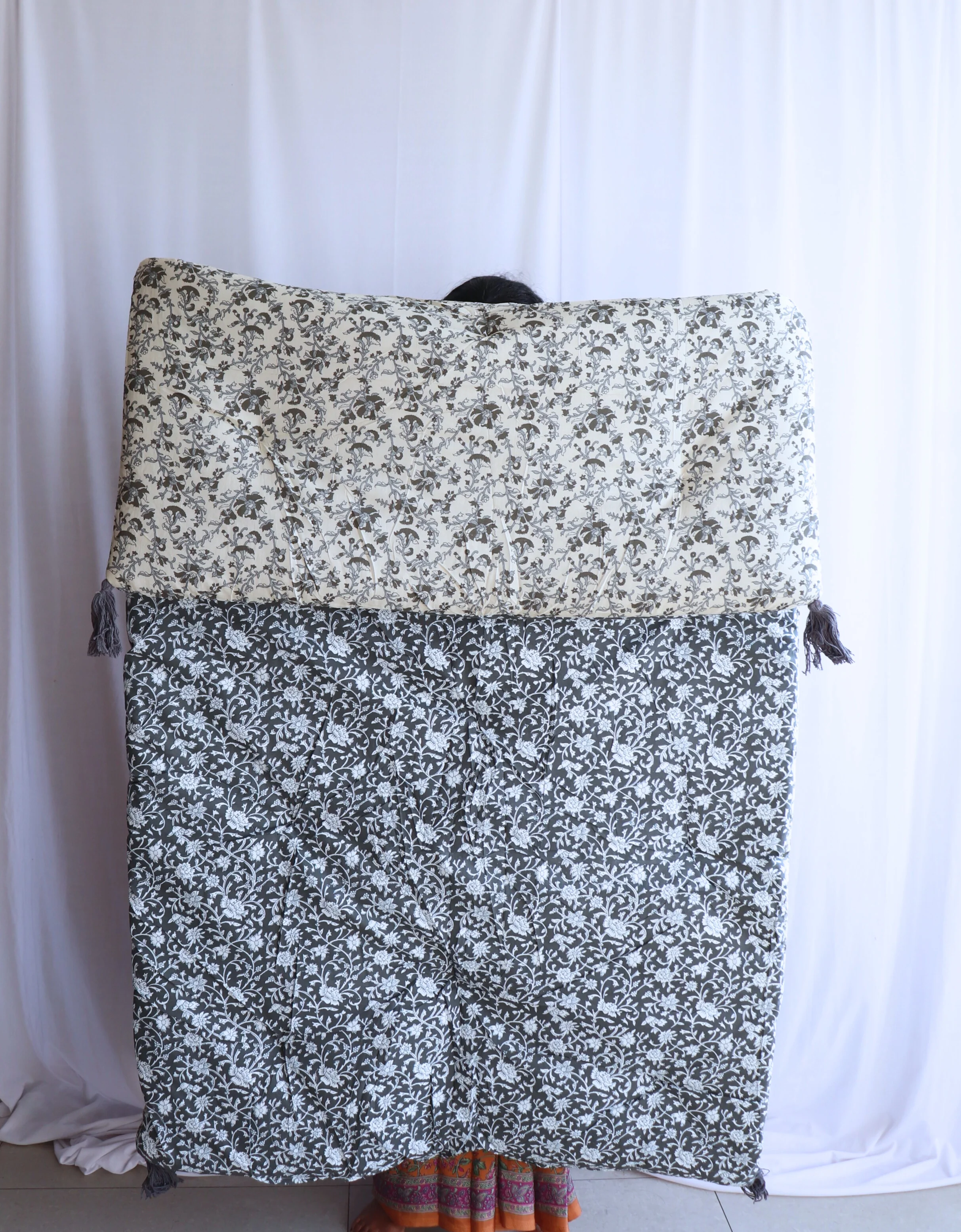 Reversible Floor Mattress - Natural Dye - Grey Floral - 3x6 feet
